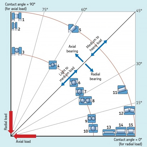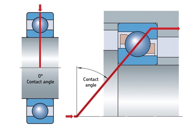 Mỗi ổ lăn có một góc tiếp xúc để truyền lực bên trong ổ trục. Ví dụ đơn giản nhất về điều này là một ổ bi rãnh sâu. Trong trường hợp này, góc tiếp xúc đối với tải hướng tâm thuần túy là 0 °. Trong khi đó, một ổ bi tiếp xúc góc luôn có góc tiếp xúc lớn hơn 0 °.